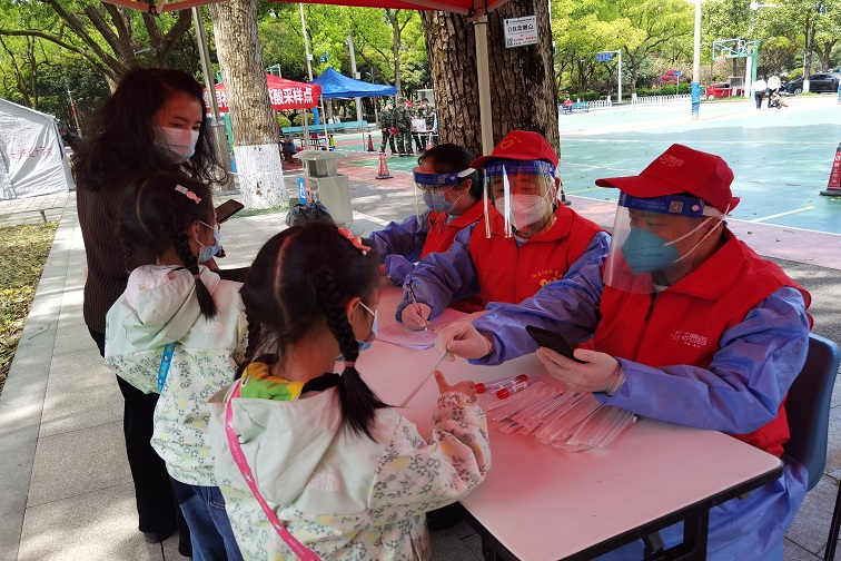 “我正在做信息录入,突然听到熟悉的声音,‘那不是爸爸吗?’抬头一看,正是老婆带着两个孩子来做核酸检测。”做志愿者时遇到孩子什么感受,志愿者肖昌贤最有发言权。