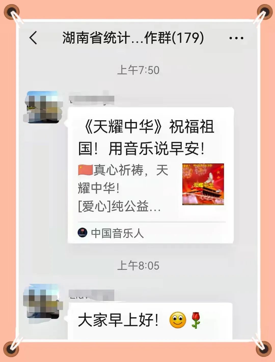 “送大家一首《天耀中华》,祝大家早安!”