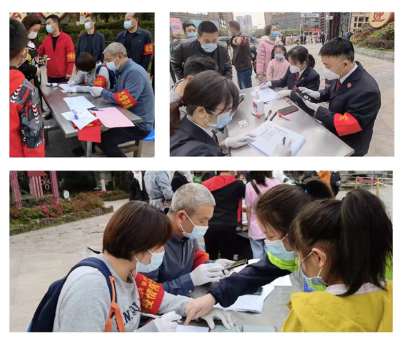 在做好自身疫情防控的同时,了解到所在的长湾里社区因开展全员核酸检测而人员不足情况后,怀化铁检院迅速在全院干警中招募志愿者29名,全力支援社区开展核酸检测工作。