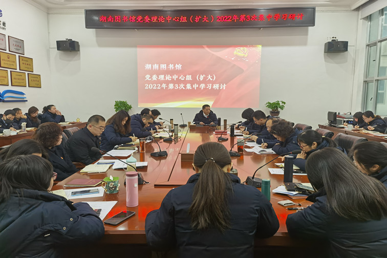 新年伊始,为扎实推进党风廉政建设,为2022年工作开局筑牢思想根基,2月17日上午,湖南图书馆召开党委理论学习中心组2022年第3次集中学习研讨,党委副书记、馆长贺美华主持学习,党委班子成员、党支部书记、中层管理干部参加。