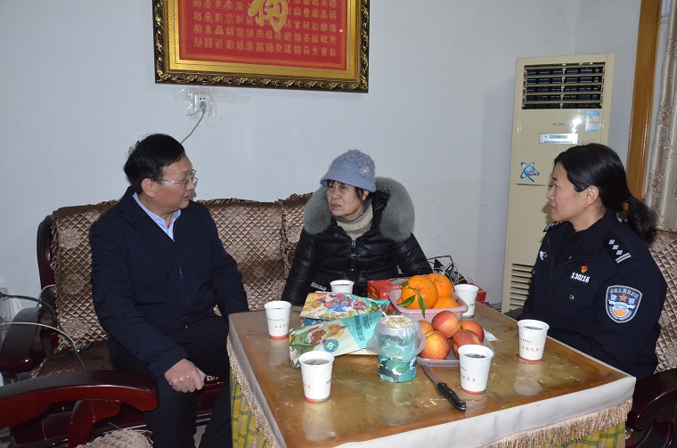 1月24日上午,娄底市直机关工委常务副书记江克美一行在市公安局机关党委有关负责同志的陪同下,首先看望慰问了因公牺牲的谭静宇烈士的母亲王爱华老人。谭静宇同志生前任娄底市城区治安巡逻大队五中队队长,2008年3月在打击“两抢一盗”、守点抓捕犯罪嫌疑人时,在与疑犯英勇搏斗过程中壮烈牺牲,2008年5月被湖南省人民政府批准为革命烈士。江克美高度赞扬了谭静宇烈士的牺牲奉献精神,亲切询问了王爱华老人的家庭情况和身体状况,给老人送上了慰问金,表示党和人民不会忘记这些因公牺牲的烈士。他勉励老人注意保重身体,坚强面对生活,党组织将尽力帮助解决其生活上的困难,让老人安度晚年。