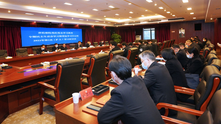 1月24日,省人民检察院党组开展党史学习教育专题民主生活会学习研讨暨理论学习中心组2022年第1次(扩大)学习,省检察院党组副书记、副检察长熊文辉主持会议。