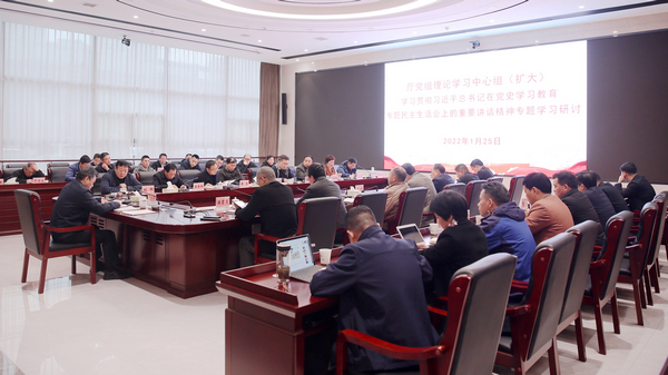 1月25日,省生态环境厅党组理论学习中心组(扩大)举行学习贯彻习近平总书记在党史学习教育专题民主生活会上的重要讲话精神专题学习研讨,更加自觉地把思想和行动统一到党中央的决策部署和省委的工作要求上来,为高质量开好专题民主生活会打牢思想基础。厅党组书记、厅长邓立佳主持学习。