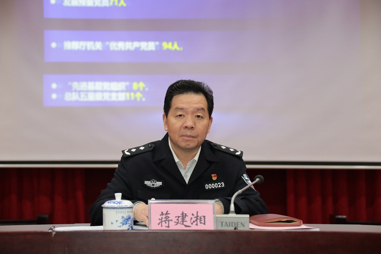 蒋建湘同志要求,要以高质量党建引领公安交管事业高质量发展。一是要始终坚持政治建警这一根本。把学习贯彻习近平新时代中国特色社会主义思想和习近平总书记关于新时代公安工作的重要论述作为首要党课和终身必修课,完善“第一议题”和习近平总书记重要指示精神督办落实等制度,更加坚定自觉地捍卫“两个确立”、做到“两个维护”。 二是要巩固拓展党史学习教育成果。用好省内丰富的红色资源、用好“学习强国”“交警网校”等网络平台,用好“第一议题”“百堂党课”等学习机制,以党领导下的公安交警非凡奋斗历程,教育引导全警坚定历史自信,弘扬伟大建党精神。三是要全力夯实组织建设这一基础。必须牢固树立大抓基层大抓基础的鲜明导向,在提升组织力、提高党员教育管理工作质量、深化支部“五化”提质建设上下功夫。四是要始终坚持服务大局这一导向。自觉把党建工作置于全省经济社会发展大局中去谋划,在全面落实“三高四新”战略定位和使命任务、服务“四个大抓”警务战略中找准定位、彰显作为。五是要牢牢把握压实责任这一抓手。要对标“五个过硬”,建立“四项清单”,强化主体责任意识,选准配强党务干部,坚持和完善党建工作责任制,打通责任落实“最后一公里”。