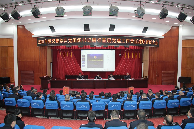 1月13日下午,交警总队召开2021年度党组织书记履行基层党建工作责任述职评议会。交警总队党委书记、总队长蒋建湘出席会议并总结讲评,交警总队党委副书记、政委杨能主持会议,在家的总队党委班子成员出席会议。总队机关、高警局机关党员民警、职工,总队退休人员党支部书记,各高速交警支队党委书记和基层党员代表参加会议。
