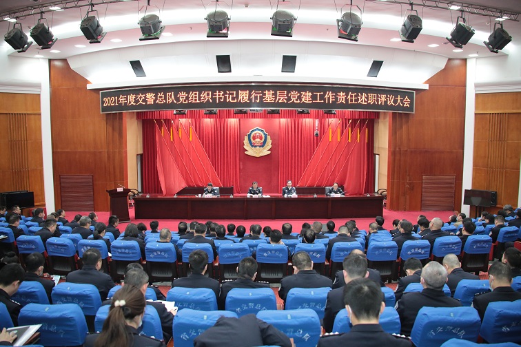 1月13日下午,交警总队召开2021年度总队党委书记履行基层党建工作责任述职评议大会。公安厅党委委员、副厅长、一级警务专员汤向荣出席会议并做点评讲话,交警总队党委书记、总队长蒋建湘向大会述职,交警总队党委副书记、政委杨能主持会议,在家的总队党委班子成员参加会议,公安厅机关党委专职副书记田介华列席指导。总队机关、高警局机关全体党员民警、职工,总队退休人员党支部书记,各高速交警支队党委书记和基层党员代表参加会议。