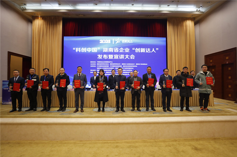 12月29日,2021年“科创中国”湖南省企业创新达人发布及宣讲活动在长沙隆重举行。省政协副主席、省工商联主席张健出席会议并讲话。中国工程院院士柴立元,省科协党组书记、常务副主席王瑰曙,省科技厅党组成员、副厅长曾立新,省工信厅党组成员、副厅长彭涛,省人社厅党组成员、副厅长周光明等领导专家共同为百名“创新达人”颁发荣誉证书。11名“创新达人”宣讲代表分别从不同领域分享了他们的创新故事和创新经验。