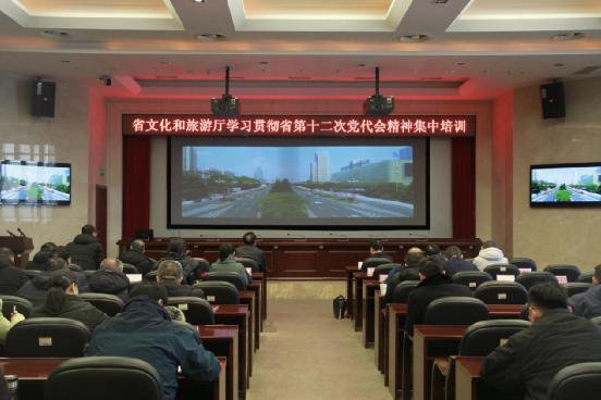 12月27日上午,根据省委组织部部署,省文化和旅游厅组织厅机关和直属单位7个党委、8个总支和主管社会组织1085名党员同步开展学习贯彻省第十二次党代会精神集中培训。禹新荣、吴杰等在家厅领导,驻厅纪检监察组、厅机关、省文物局、质量、宣传信息和导游服务中心120余名党员在12楼会议室集中学习观看了《奋进新征程 谱写新篇章——深入学习宣传贯彻省第十二次党代会精神》党员教育专题电视片。