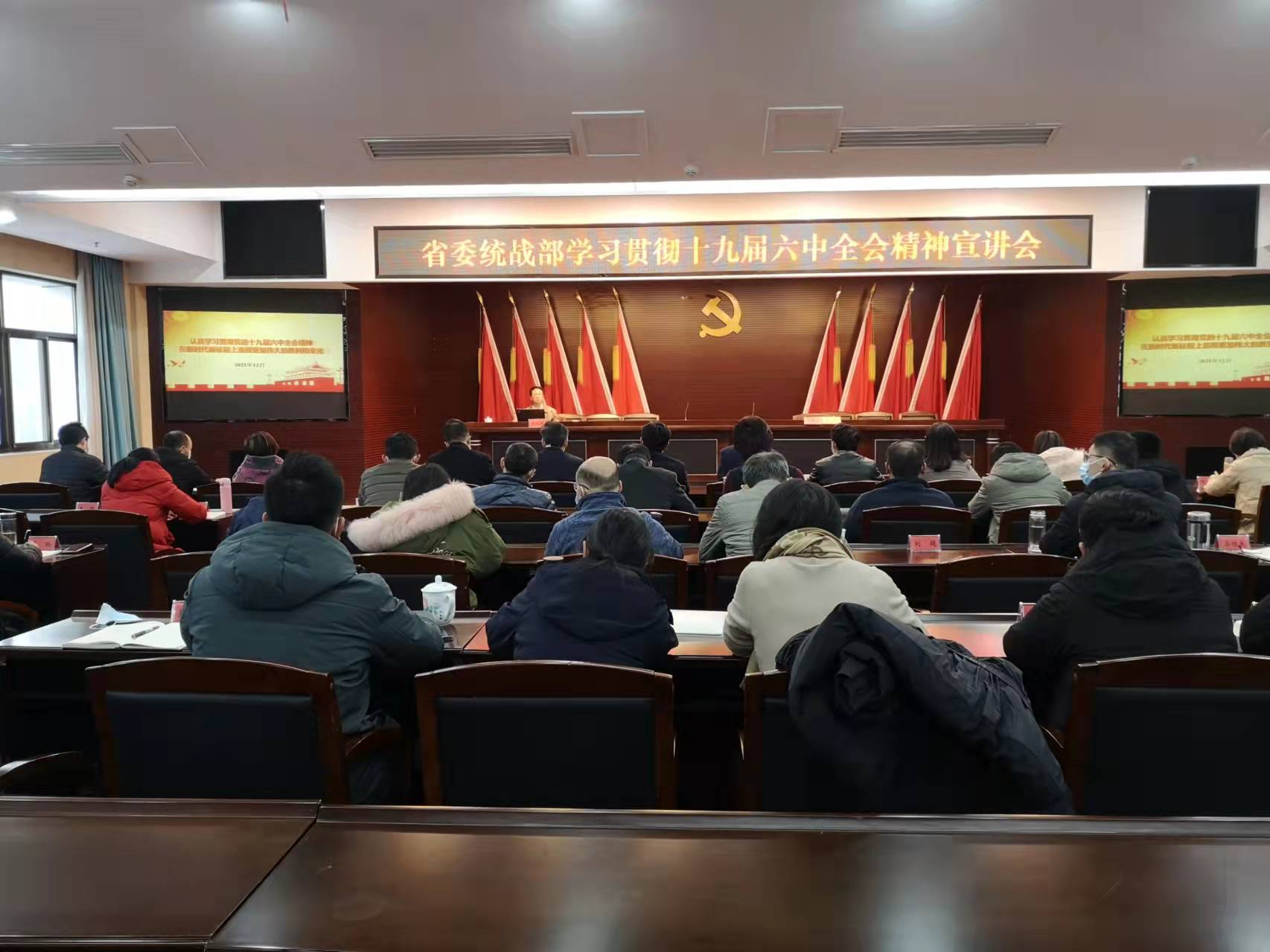12月28日下午,省委统战部举办学习贯彻党的十九届六中全会精神宣讲报告会。省委宣讲团成员、省委统战部副部长、省政府侨办主任符俊根作宣讲报告,省委统战部二级巡视员盛完善主持宣讲报告会。