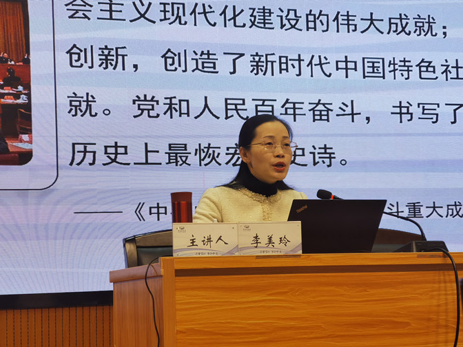 李美玲从百年奋斗的重大成就、伟大意义、理论创新、宝贵经验四个方面对《中共中央关于党的百年奋斗重大成就和历史经验的决议》进行了全面解读,让全体馆员充分认识到这份马克思主义纲领性文献,是新时代中国共产党人不忘初心、牢记使命的政治宣言,是我们党团结带领人民以史为鉴、开创未来的行动指南。