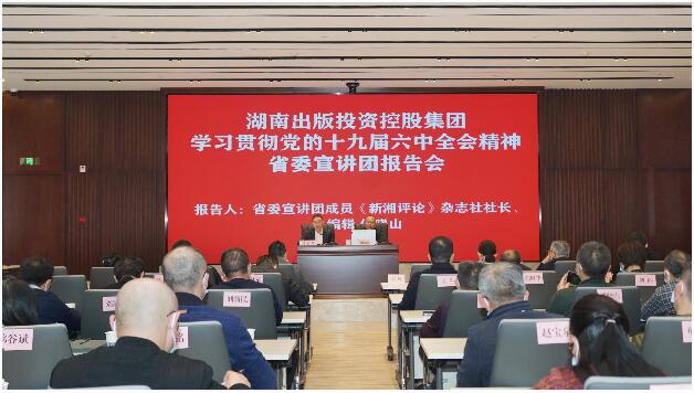 12月15日下午,根据省委统一安排,湖南出版投资控股集团举办学习贯彻党的十九届六中全会精神省委宣讲团报告会。省委宣讲团成员、《新湘评论》杂志社社长、总编辑任晓山作宣讲报告。集团党委书记、董事长,中南传媒董事长彭玻主持会议。