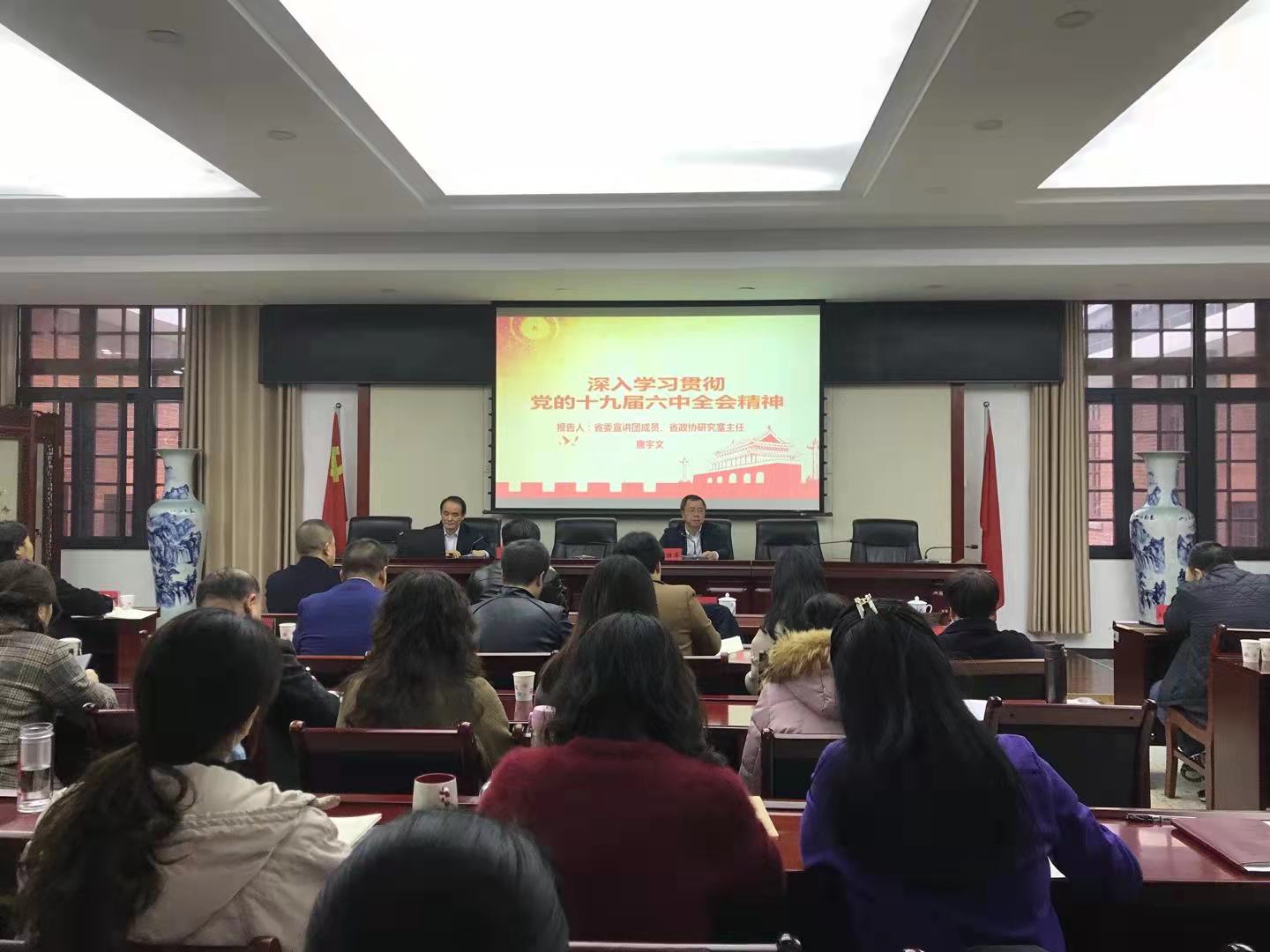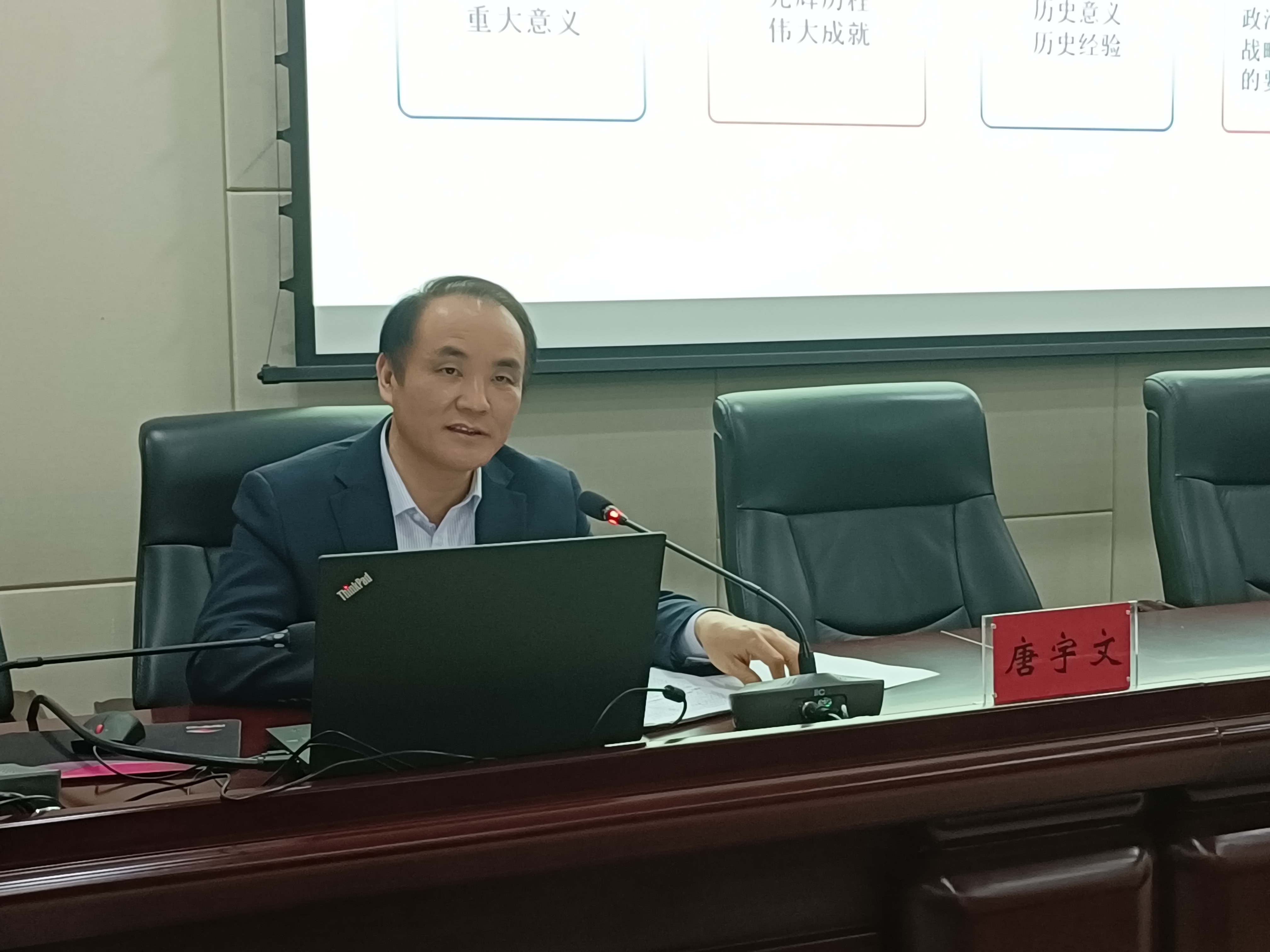 为深入学习领会党的十九届六中全会精神,进一步推动全会精神的贯彻落实,12月14日,省地方金融监管局举行学习贯彻党的十九届六中全会精神宣讲报告会。省委宣讲团成员、省政协研究室主任唐宇文作宣讲报告,局党组成员、副局长刘胜军主持学习,在家局领导和局机关全体干部职工参加学习。