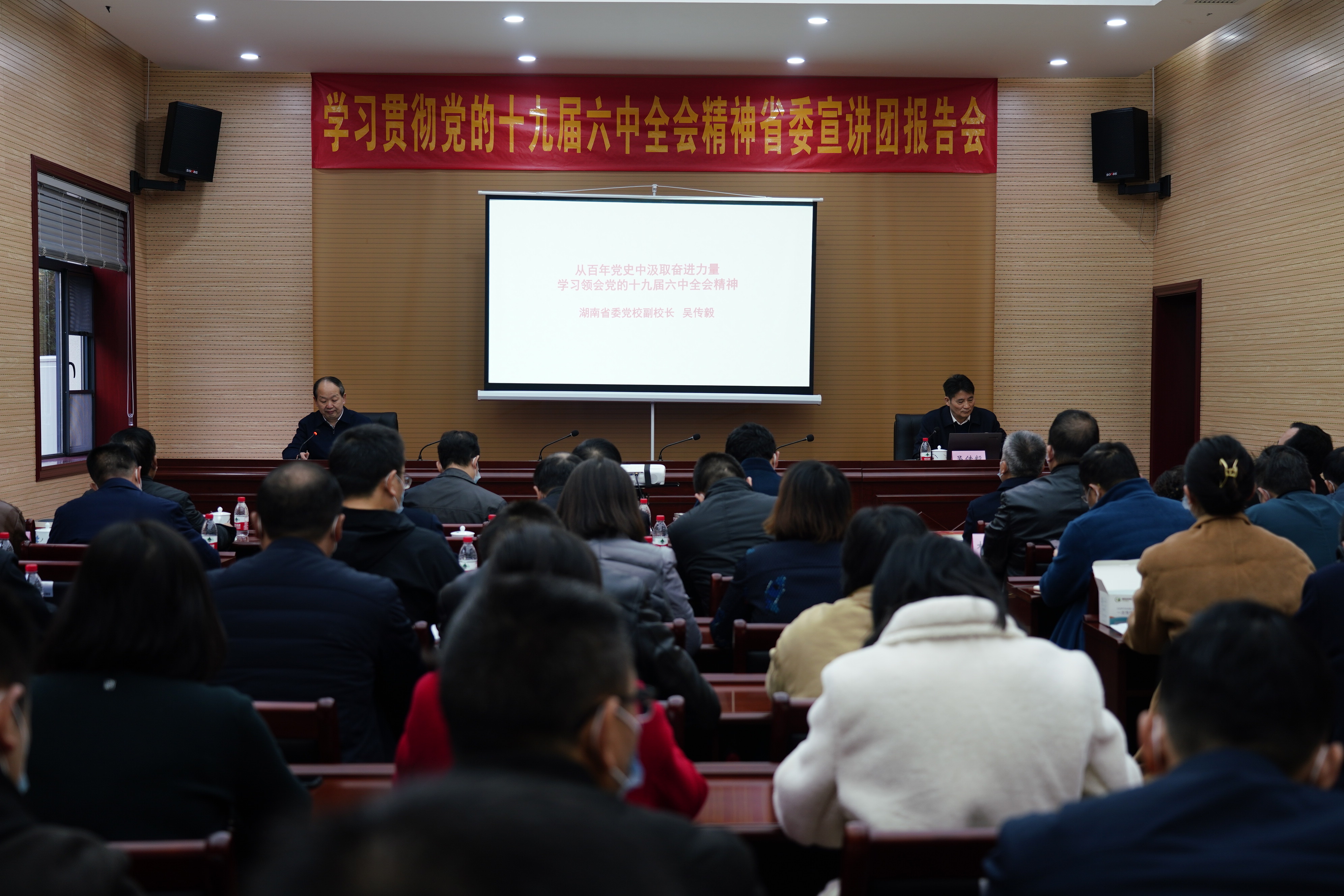 吴传毅在报告会上,紧紧围绕十九届六中全会召开的重大意义、百年党史的伟大历史成就、以史为鉴创造时代新辉煌等三个方面,就学习贯彻全会精神作了全面深入的解读和阐释。既为党员干部学深悟透全会精神解疑释惑、凝聚共识,也为贯彻落实全会精神提出方法、拓展路径,引导广大党员干部职工勿忘昨天苦难辉煌、无愧今天使命担当、不负明天伟大梦想。