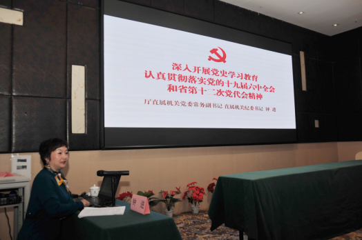 为学习宣传贯彻党的十九届六中全会精神和省第十二次党代会精神,落实中央、省委、厅党组关于各级带头广泛开展宣讲活动的工作要求,教育引导生态环境厅系统党员干部进一步增强“四个意识”、坚定“四个自信”、做到“两个维护”,12月9日,省生态环境厅机关党委常务副书记钟进为厅系统工会干部作《深入开展党史学习教育,认真贯彻落实党的十九届六中全会和省第十二次党代会精神》专题宣讲。