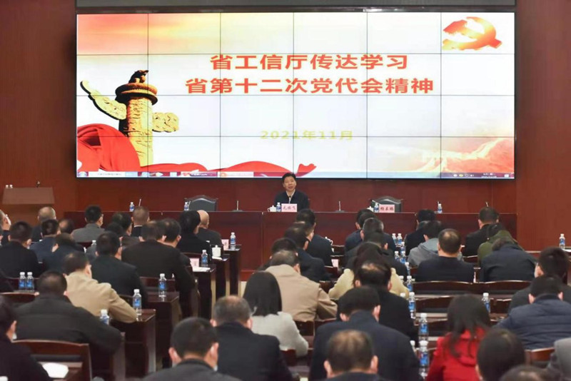 11月29日上午,省工信厅召开全厅干部大会,厅党组书记、厅长毛腾飞传达学习省第十二次党代会精神,全面部署贯彻落实工作。厅党组副书记、副厅长杨亲鹏主持会议。
