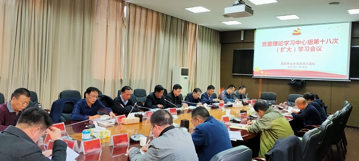 11月18日,国家林草局中南院召开党委理论学习中心组第十八次(扩大)学习会议,专题学习党的十九届六中全会精神。会议由党委书记刘金富主持,院领导班子其他成员、各处室(中心、公司)负责人参加了学习。