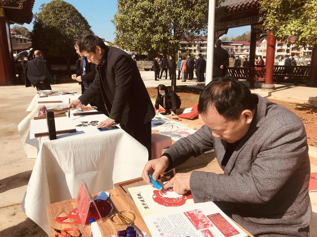 冬日暖阳高照,村民们兴奋喝彩、掌声连连。开场舞《锦绣潇湘》活力四射,耳熟能详的《母亲》《不忘初心》《带我到山顶》唱出观众共鸣,刚刚获得中国戏剧最高奖梅花奖的演员张璇联袂农工党党员杨璟老师带来的京歌与舞蹈《卜算子•咏梅》惊艳四座,结束曲《我和我的祖国》引发全场合唱……不仅演出效果热烈,还有书画家曾汉兵、王雪松和民间剪纸非遗传承人王开健现场即兴创作了40余幅作品送给村民,让大家感受到中华传统艺术的博大精深。