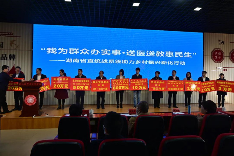 此次活动得到湖南统一战线积极响应,现场向新化县各医院、乡村街道等捐赠价值1000多万元的资金和物品。中南大学湘雅三医院、湖南科技职院等单位还与新化县人民医院、新化楚怡工业学校等对口签订结对帮扶长期协议。