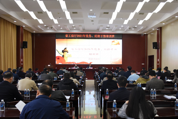 为深入学习习近平新时代中国特色社会主义思想,贯彻落实新时代党的建设总要求,不断加强新时代党务、纪检干部队伍建设,10月25日、28日省工信厅机关党委举办2021年党务、纪检干部培训班。厅机关处室党支部书记、党务干部、纪检干部近90人参加培训。厅一级巡视员宁建业出席并讲话,机关党委常务副书记、机关纪委书记郭凤主持会议并通报厅机关各党支部“五化”建设自查情况。