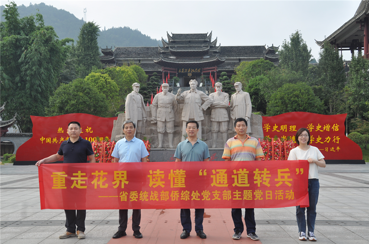 近日,省委统战部侨综处党支部前往怀化市通道县开展“重走花界·读懂‘通道转兵’”主题党日活动,深入学习贯彻习近平总书记考察湖南重要讲话精神,实地体验通道转兵旧址和纪念馆,感受老一辈无产阶级革命家坚定信念、艰苦奋斗的共产党人高尚品格,真切感受信仰和初心的力量。