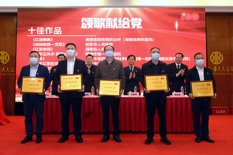 培训宣读了《关于湖南省卫生健康系统“颂歌献给党”网络接力活动评选结果的通报》,对最佳人气作品、十佳作品、优秀组织奖获奖代表进行了现场颁奖。