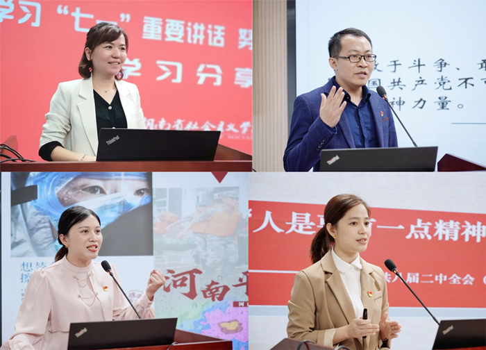 分享会主题突出、氛围浓厚,来自学院各处室的8名同志走上讲台,以学习贯彻习近平总书记“七一”重要讲话精神为主线,有讲伟大建党精神,有讲中国共产党的百年英雄气,有讲新时代青年责任与担当等,都紧密结合了各自岗位,就如何思考谋划工作、积极贯彻落实等,或理论阐释、或列举实例,充分展现了社院人高涨的学习热情,进一步推动知党爱党、知史爱国的行动自觉。