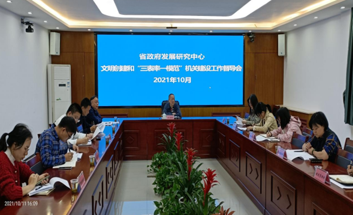 10月11日,省政府发展研究中心党组成员、副主任王佳林主持召开文明创建和“三表率一模范”机关建设工作督导会,机关党委负责同志、各部室组织委员参加会议。
