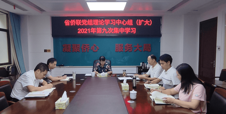 9月8日,省侨联党组理论学习中心组(扩大)举行2021年第9次集中学习。省侨联党组书记黄芳主持,中心组成员及各处室负责人参加。