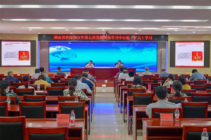 7月29日-30日,省科协召开2021年第七次党组理论学习中心组(扩大)学习会,通过自学,邀请专家作宣讲报告,组织开展集中学习和研讨交流,深入学习贯彻习近平总书记“七一”重要讲话精神。