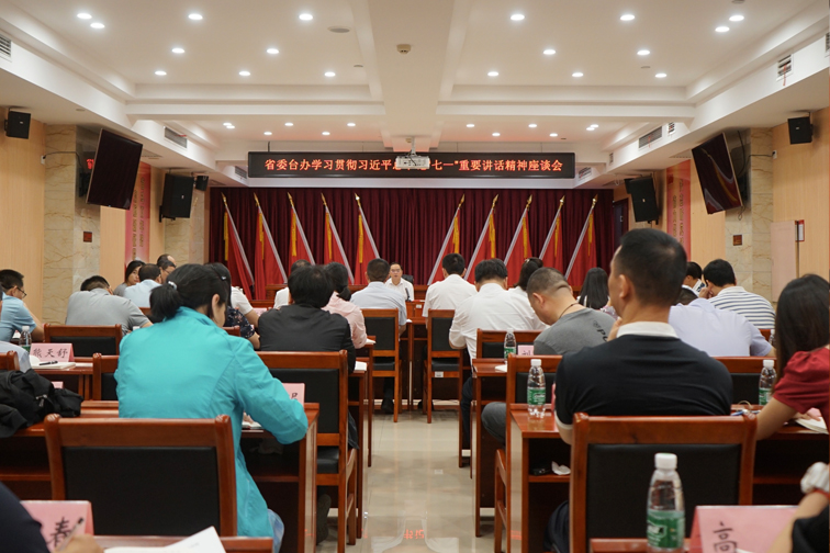 2021年7月9日上午,省委台办召开学习贯彻习总书记“七一”重要讲话精神座谈会。省委台办肖祥清主任主持并讲话,机关全体干部职工参加会议。