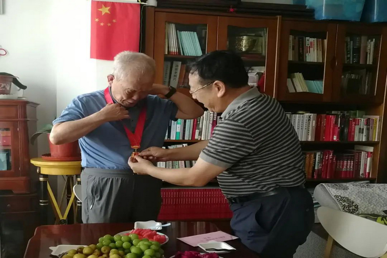 刘群同志为路老佩戴纪念章,与之亲切交谈,转达厅党组对他的亲切问候,悉心询问了他的身体状况和生活情况,嘱咐他要保重身体,并向他致以崇高的敬意和诚挚的问候。