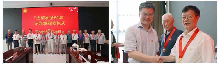 为“光荣在党50年”的老同志颁发纪念章,是中国共产党成立100周年系列庆祝活动的重要组成部分,体现了以习近平同志为核心的党中央对50载初心如磐的老党员的深切关怀和充分肯定,也是引导年轻党员干部对标老党员的崇高境界和务实作风,赓续红色基因,对党绝对忠诚,坚定理想信念的重要举措。省生态环境厅系统共有51名同志荣获纪念章。