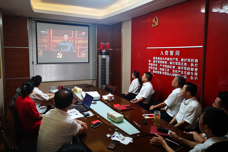 7月1日上午8时,庆祝中国共产党成立100周年大会在北京天安门广场隆重举行,习近平总书记作重要讲话。湘西州直工委机关党支部全体党员集中收看大会直播,聆听总书记重要讲话。