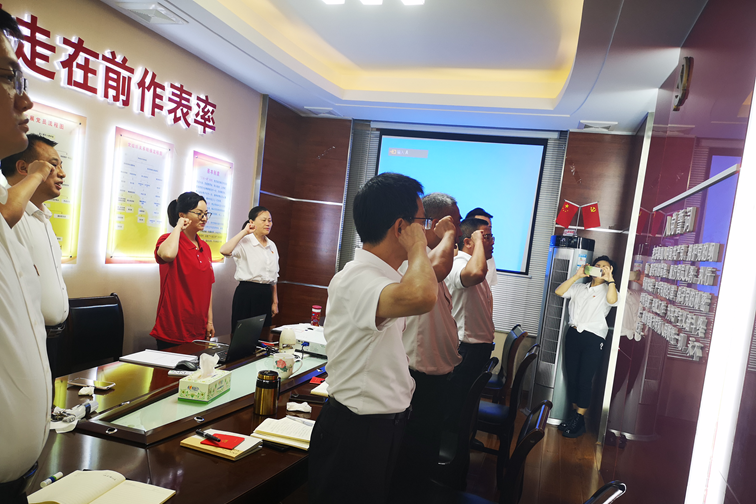 在收看直播时,党员们边听边记、边看边想,思想感情被习总书记的讲话一次次感染,党员自豪感、中华民族优越感在心中一次次升腾。直播结束后,在工委常务副书记张文英带领下,全体党员怀着激动的心情,举起右手,一起重温了誓词。