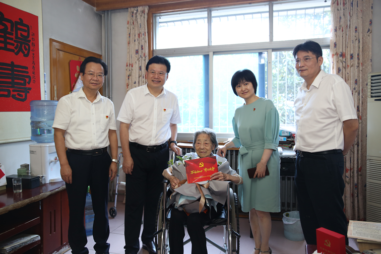 2021年7月1日,中国共产党建党100周年之际,省直工委常务副书记龚凤祥,副书记伍英,省直工委基层组织建设指导部部长黄敏一行来到省委党校(湖南行政学院)走访慰问省直机关最年长的老党员——104岁的离休干部孙怡静同志,为她送上节日的祝福和慰问。常务副校(院)长曹健华、副校(院)长吴传毅陪同,机关党委和离退办负责同志参加。