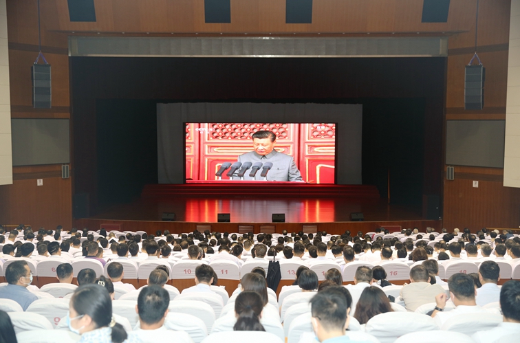 7月1日上午8:00,庆祝中国共产党成立100周年大会在北京天安门广场隆重举行。省委党校(湖南行政学院)集中组织收看了庆祝中国共产党成立100周年大会实况直播,聆听习近平总书记在大会上发表的重要讲话。校(院)委成员、全体教职工、主体班学员、离退休党员干部代表等1000余人参加。