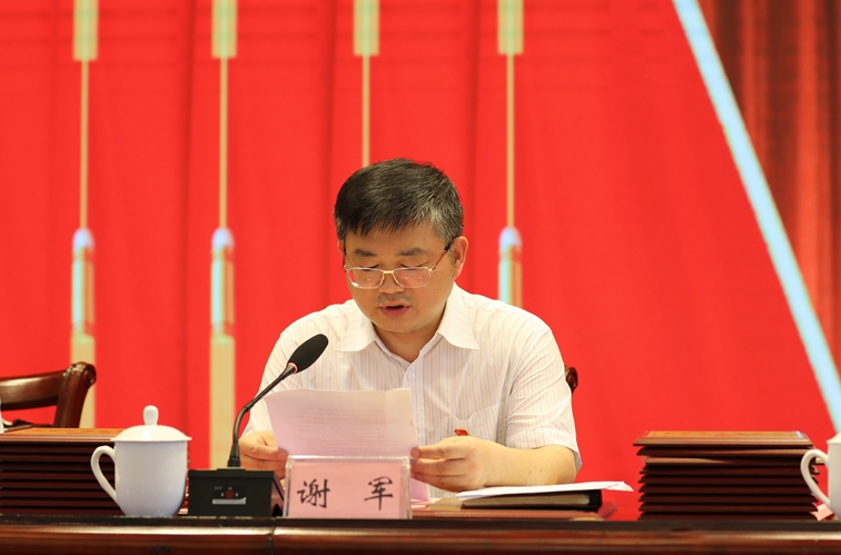 厅党组成员、副厅长谢军宣读我厅被省委和省直工委表彰的优秀共产党员、优秀党务工作者和先进基层党组织名单,以及《中共湖南省审计厅机关委员会关于表彰2021年度先进基层党组织、优秀党务工作者和优秀共产党员的决定》。