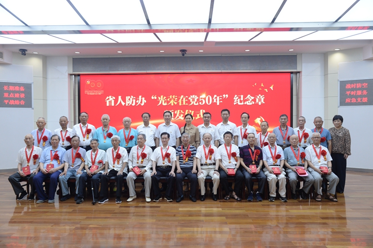 一百年征程浩荡,五十载初心如磐。6月28日,省人防办举行庄重简朴的“光荣在党50年”纪念章颁发仪式,向34名党龄达到50周年、一贯表现良好的党员颁发纪念章。参加仪式的有办领导、“光荣在党50年”老党员、机关全体在职党员和直属单位班子成员。