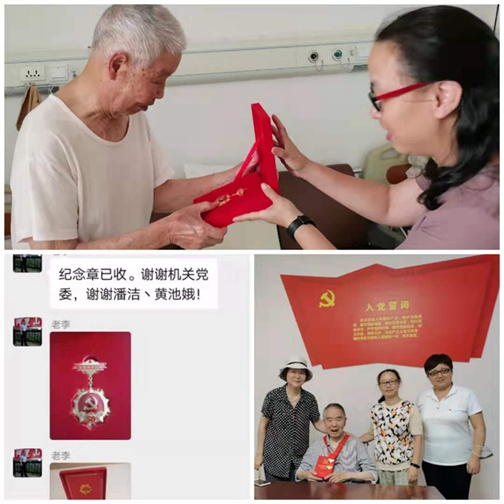 对于随子女定居外地的老党员,局机关党委征求本人意见,采取邮寄、委托子女代领等方式及时将纪念章发放到位。