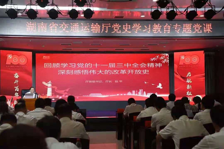 为热烈庆祝中国共产党成立100周年,深入开展党史学习教育,表彰先进,树立典型,激励厅直各级党组织和广大党员在交通运输高质量发展实践中奋发进取、创先争优,进一步发挥战斗堡垒和先锋模范作用,6月28日,湖南省交通运输厅召开庆祝建党100周年专题党课暨“七一”表彰大会。