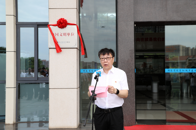 6月15日上午,省住房和城乡建设厅在办公楼前坪隆重举行“全国文明单位”揭牌仪式,激励全厅干部职工凝心聚力,砥砺前行,再创辉煌。揭牌仪式由厅党组副书记、副厅长舒行钢同志主持,厅党组书记、厅长鹿山同志为全国文明单位奖牌揭牌并讲话。厅领导、驻厅纪检监察组、厅机关全体干部职工、直属单位主要负责人参加了揭牌仪式。