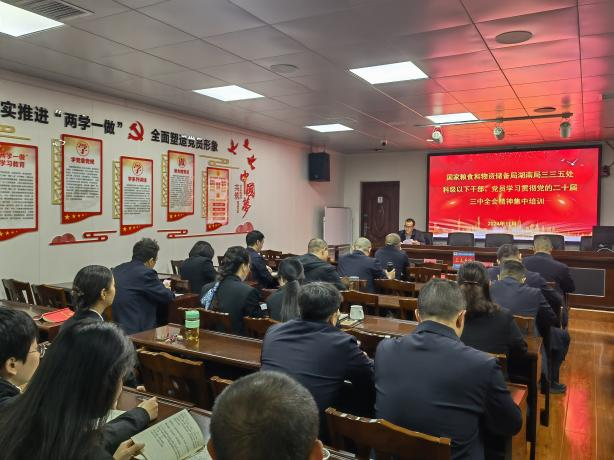 为深入学习贯彻习近平总书记在党的二十届三中全会上的重要讲话精神,11月4日至11日,国家粮食和物资储备局湖南局三三五处开展科级及以下干部、党员学习贯彻党的二十届三中全会精神集中培训。11月14日召开支部大会,党员干部围绕“如何将党的二十届三中全会精神粮储工作中”,结合粮储工作实际,对如何在工作中贯彻这些原则进行了深入的思考和讨论。