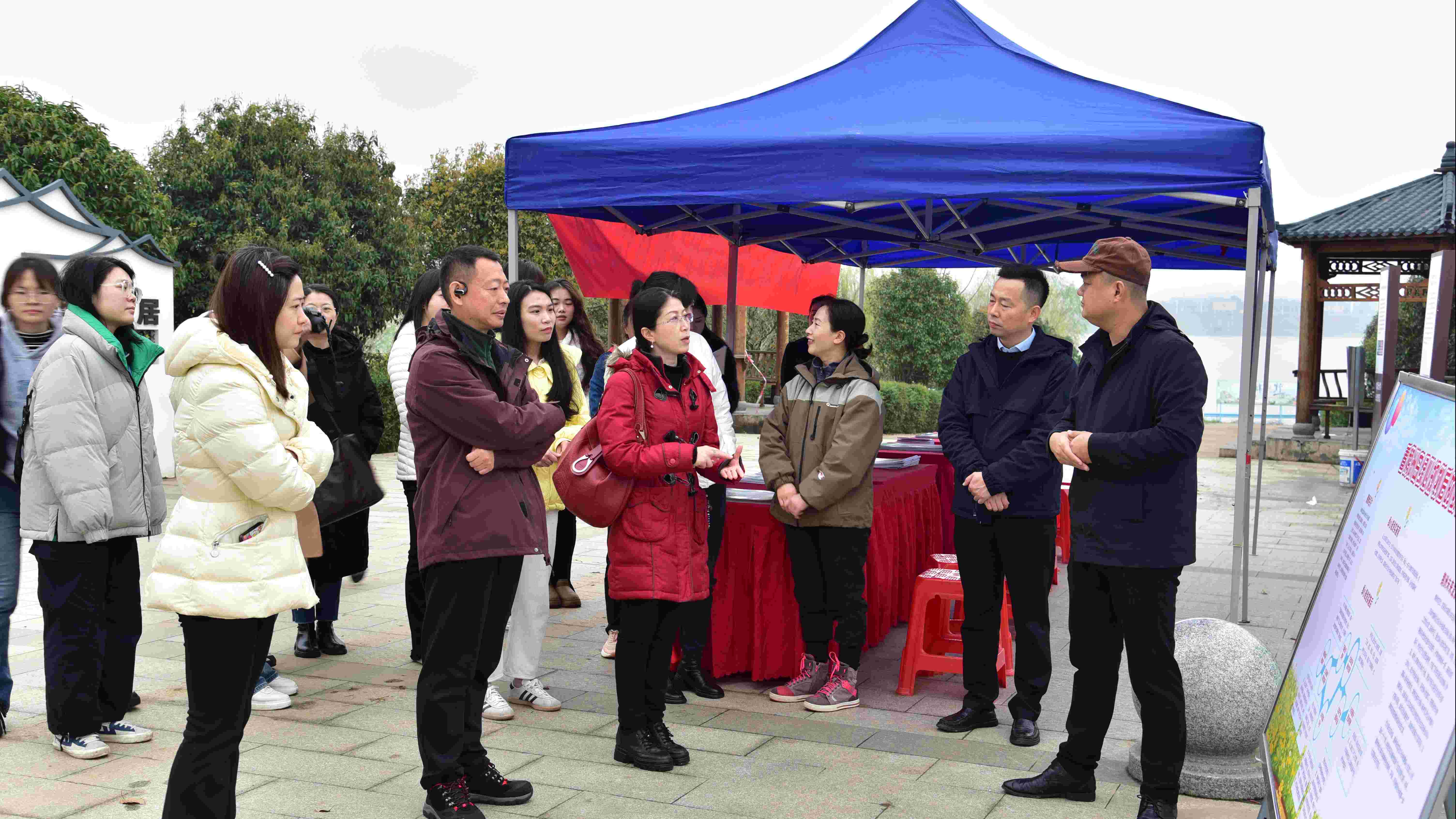 本次活动以实地调研、座谈交流、公益宣传等方式展开,形式多样、亮点十足。活动首站来到湘江科学中心“五大建”项目现场,大家深入调研湘江科学城科技创新项目招引情况,探讨科技创新如何助力长株潭一体化,推动绿色转型和高质量发展。随后,大家前往湘江新区坪塘街道双湖村,实地调研美丽乡村建设成果,并开展《长株潭绿心保护条例》宣传活动,向当地群众和游客发放宣传资料,讲解绿心保护的重要性,号召更多人参与到绿心生态保护行动中。在位于长株潭城市群生态绿心核心区的鹅洲岛,大家饶有兴致地观摩“生态+文旅”融合项目发展成果,在田间、花香中感受农旅融合带来的新气象。