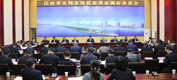 湖南高院相关庭室,长沙中院、湘潭中院,岳阳楼区法院、洪江市法院、嘉禾县法院负责同志汇报工作。部分干警代表参加座谈会。