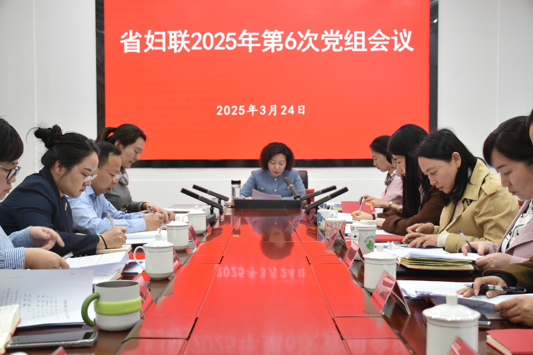3月24日,省妇联党组书记、主席杨兰英主持召开省妇联2025年第六次党组(扩大)会议,会议传达学习了习近平总书记关于加强党的作风建设的重要论述、中央党的建设工作领导小组会议精神以及中共中央办公厅《关于在全党开展深入贯彻中央八项规定精神学习教育的通知》精神,省委常委会议和省委党的建设工作领导小组会议精神,研究贯彻落实意见。