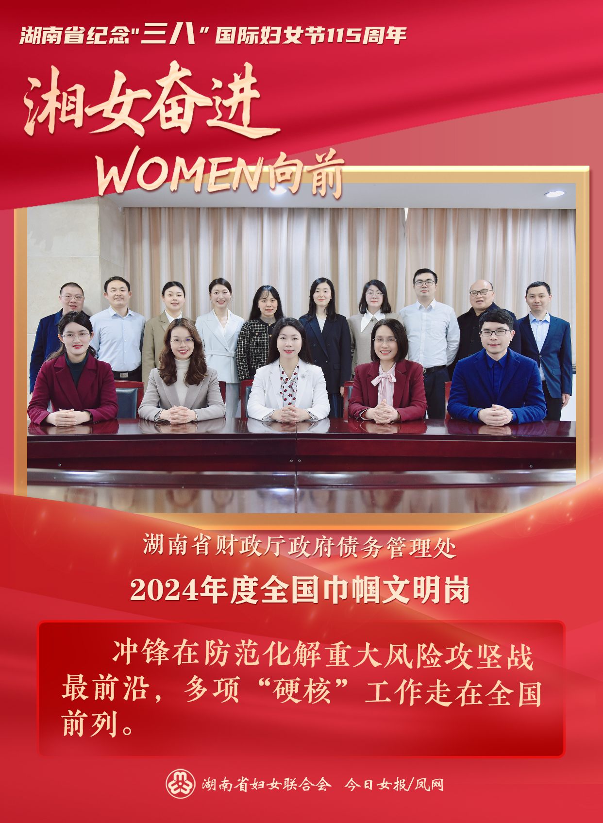 近日,省财政厅政府债务管理处作为全国地方财政系统和湖南省直单位唯一代表,被授予“全国巾帼文明岗”称号。