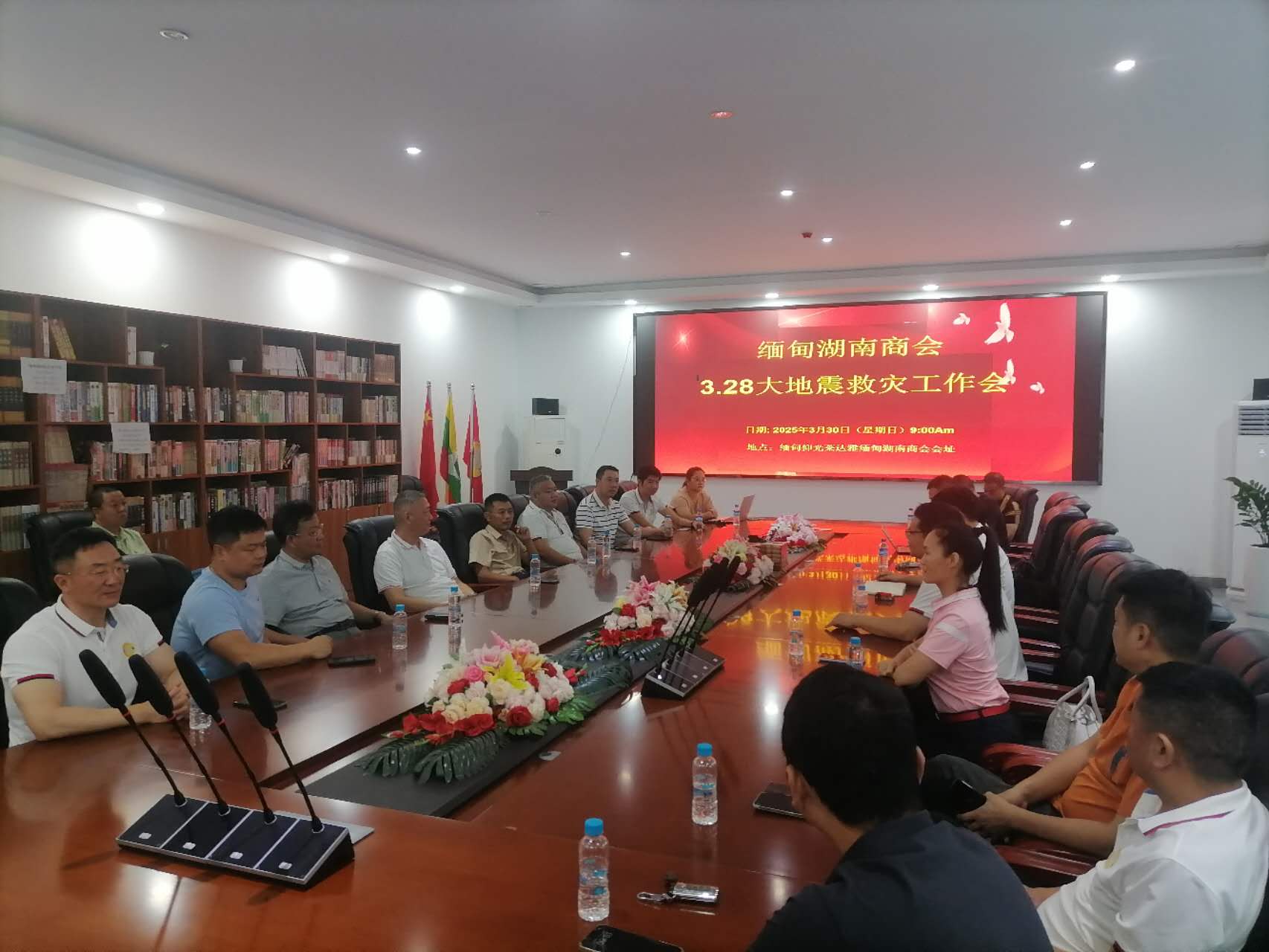 缅甸湖南商会3.28大地震救灾工作会现场。