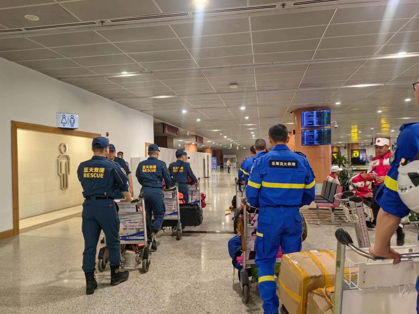 到达仰光机场后,缅甸湖南商会协助安排救援队马不停蹄奔赴震中曼德勒。