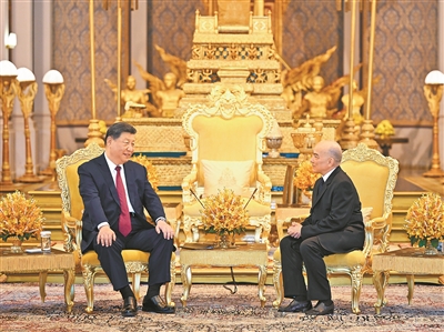 本报金边4月17日电 (记者杜尚泽、章念生)4月17日下午,柬埔寨国王西哈莫尼同中国国家主席习近平在金边王宫举行会见。