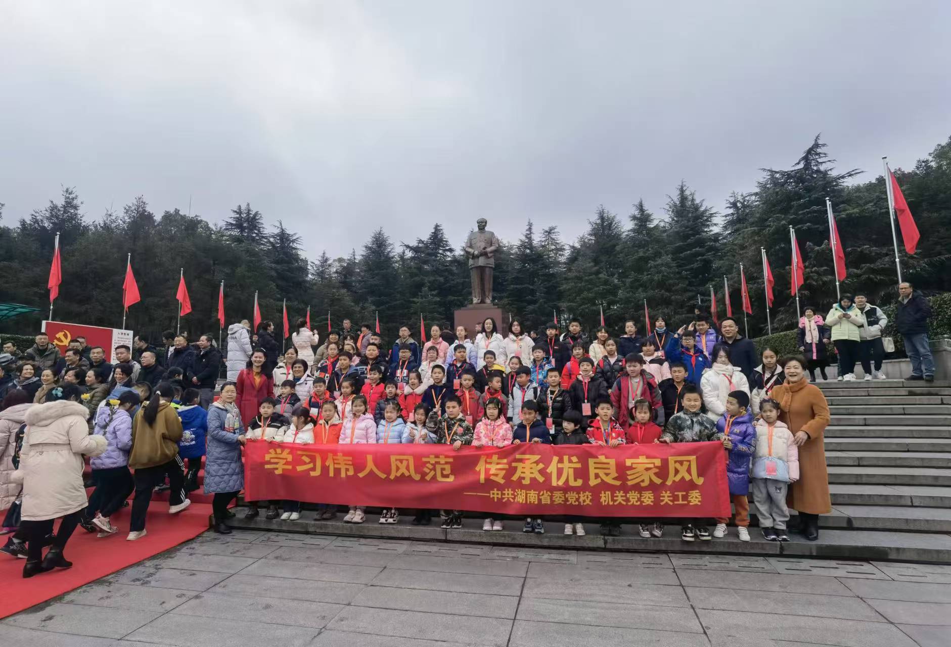 传承优良家风,引导树立正确价值观。精心策划“清朗家风”工程,筹划“学习伟人风范·传承优良家风”主题活动,组织开展内容丰富的韶山与花明楼研学,参观毛主席遗物馆,聆听毛主席家风家教小故事,深切感受伟人风采与家国情怀,参观刘少奇纪念馆,让孩子们在实践中汲取优良家风的力量,树立正确的价值观,成为担当时代重任的少年。